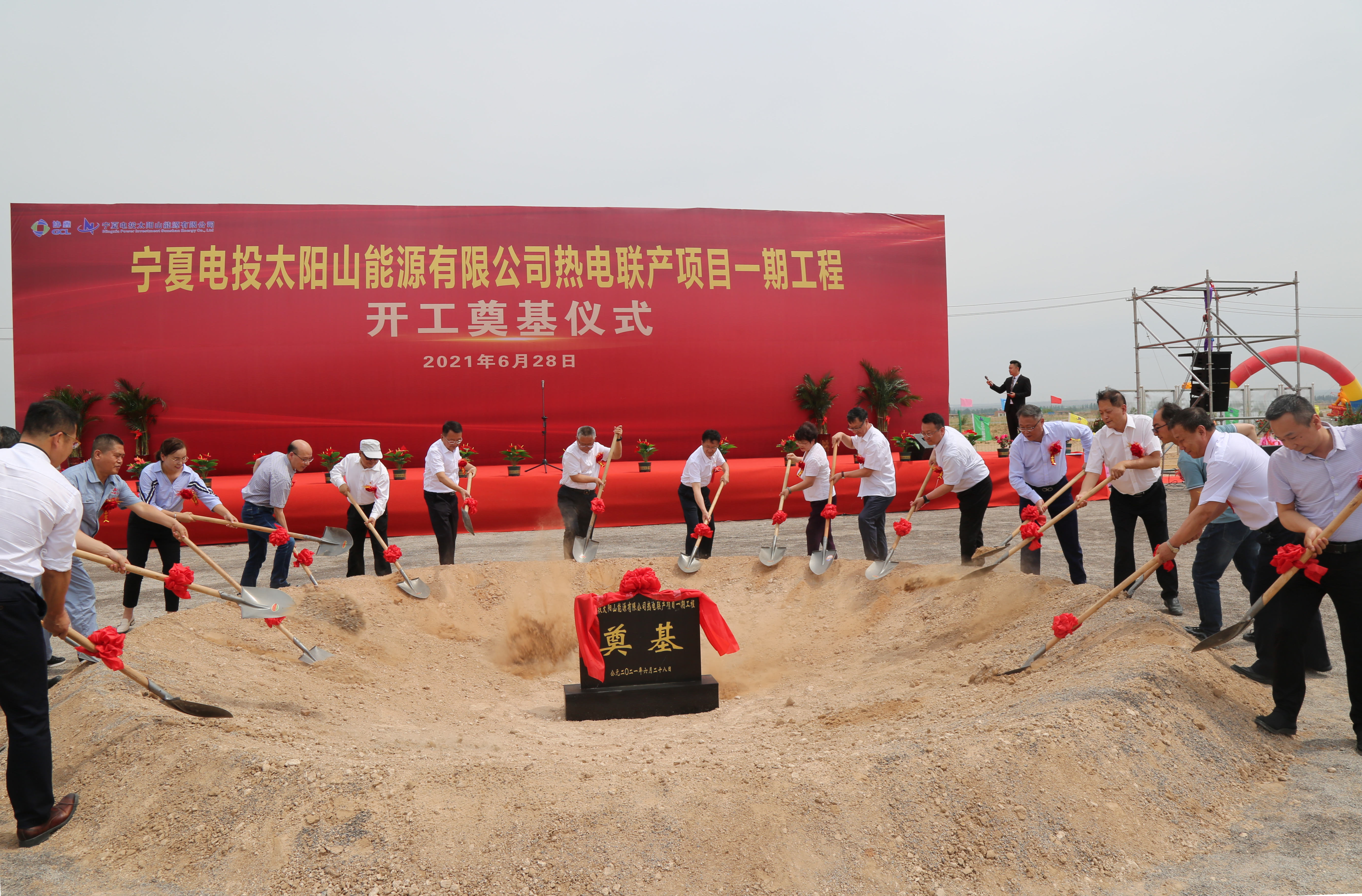 又訊 6月28日上午10時38分,太陽山能源公司熱電聯產項目一期工程開工奠基儀式在吳忠太陽山開發區廠址所在地舉行,集團公司主要領導蒞臨開工儀式現場,正式拉開了工程基建的序幕。
