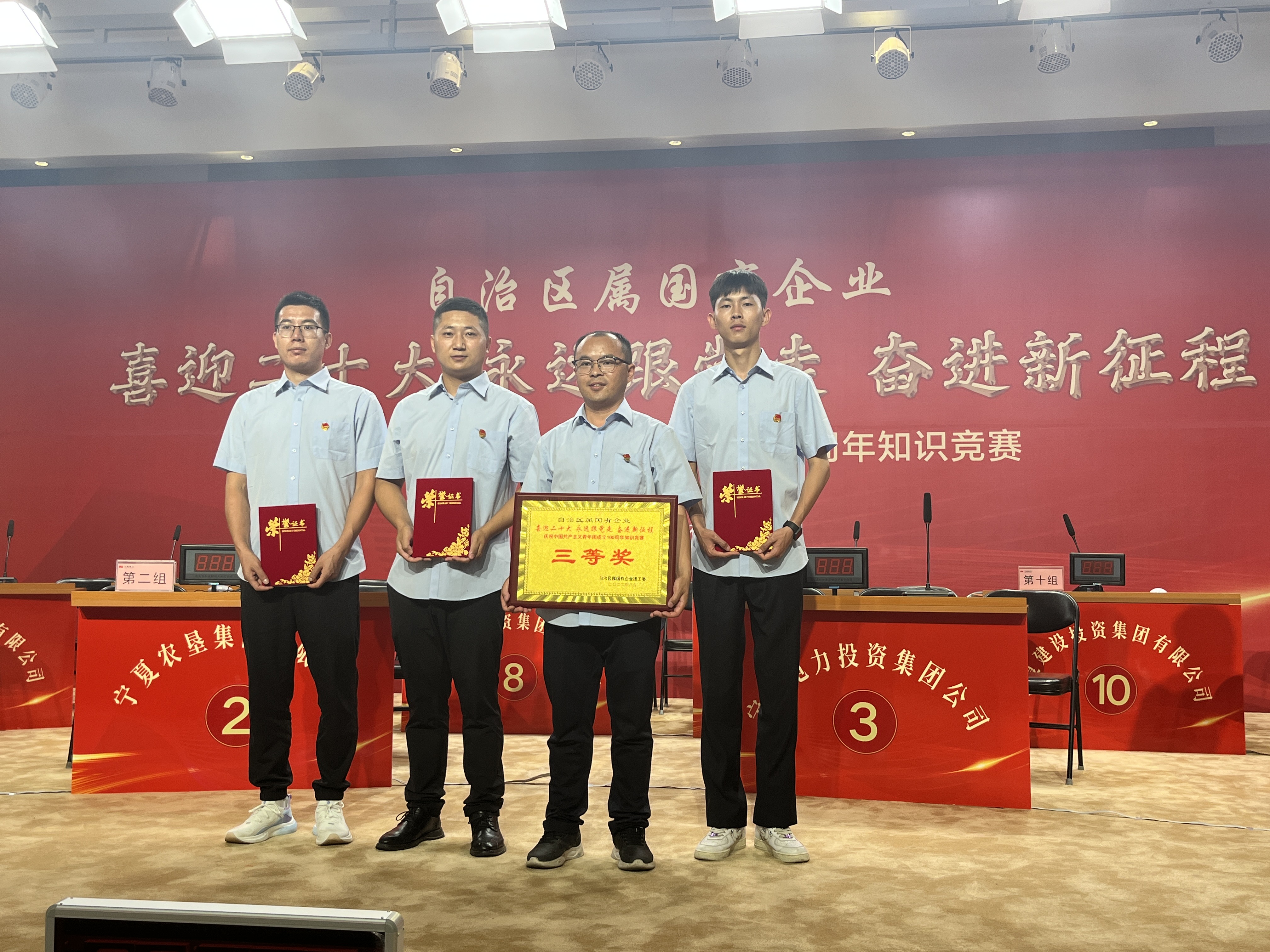 8月5日下午,自治區屬國有企業團工委舉辦“喜迎二十大、永遠跟黨走、奮進新征程”慶祝中國共產主義青年團成立100周年知識競賽。集團公司選派太陽山能源公司三名職工參賽,經過與11支參賽隊伍的激烈角逐,最終榮獲三等獎。